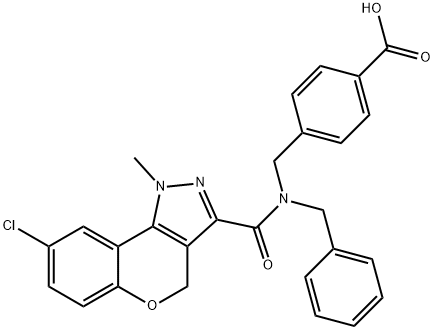 英文名稱: 4-((N-benzyl-8-chloro-1-methyl-1,4-dihydrochromeno[4,3-c]pyrazole-3-carboxamido)methyl)benzoicacid CAS號(hào): 1773489-72-7 分子式: C27H22ClN3O4 分子量: 487.93