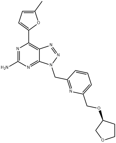 英文名稱: (S)-7-(5-methylfuran-2-yl)-3-((6-(((tetrahydrofuran-3-yl)oxy)methyl)pyridin-2-yl)methyl)-3H-[1,2,3]triazolo[4,5-d]pyrimidin-5-amine CAS號(hào): 1202402-40-1 分子式: C20H21N7O3 分子量: 407.43