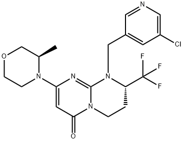 英文名稱: (S)-1-((5-chloropyridin-3-yl)methyl)-8-((R)-3-methylmorpholino)-2-(trifluoromethyl)-3,4-dihydro-1H-pyrimido[1,2-a]pyrimidin-6(2H)-one CAS號: 1523406-39-4 分子式: C19H21ClF3N5O2 分子量: 443.85