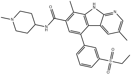 英文名稱: 5-[3-(Ethylsulfonyl)phenyl]-3,8-dimethyl-N-(1-methyl-4-piperidinyl)-9H-pyrido[2,3-b]indole-7-carboxamide CAS號(hào): 934541-31-8 分子式: C28H32N4O3S 分子量: 504.64