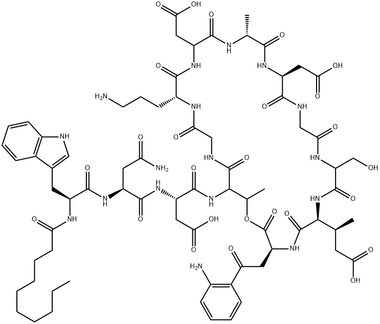 英文名稱: Daptomycin CAS號(hào): 103060-53-3 分子式: C72H101N17O26 分子量: 1620.67 EINECS號(hào): 600-389-2