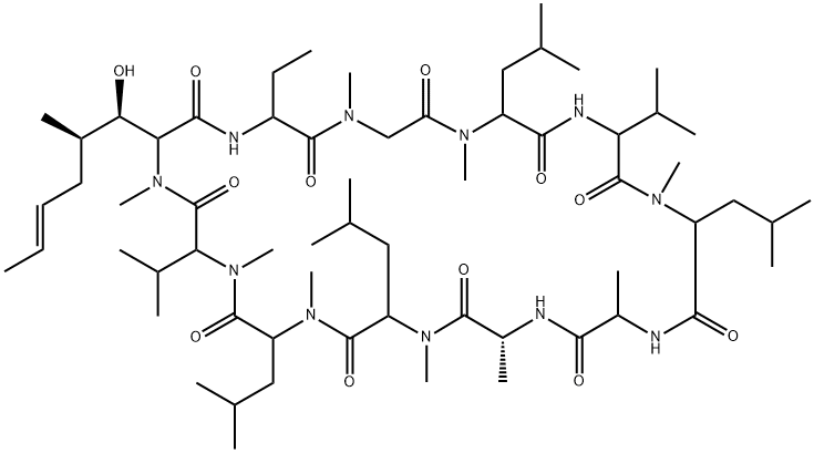 英文名稱: Cyclosporin A CAS號: 59865-13-3 分子式: C62H111N11O12 分子量: 1202.61 EINECS號: 611-907-1