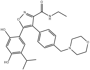英文名稱:5-[2,4-Dihydroxy-5-isopropylphenyl]-N-ethyl-4-[4-(4-morpholinylmethyl)phenyl]-3-isoxazolecarboxamide CAS號:747412-49-3 分子式:C26H31N3O5 分子量:465.54