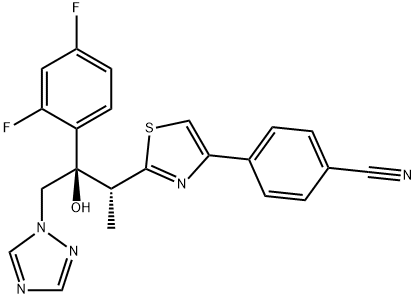 英文名稱:4-[2-[(2R,3R)-3-(2,4-difluorophenyl)-3-hydroxy-4-(1,2,4-triazol-1-yl)b utan-2-yl]-1,3-thiazol-4-yl]benzonitrile CAS號:182760-06-1 分子式:C22H17F2N5OS 分子量:437.47