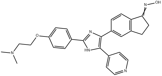 英文名稱:5-[2-[4-[2-(Dimethylamino)ethoxy]phenyl]-5-(4-pyridinyl)-1H-imidazol-4-yl]-2,3-dihydro-1H-inden-1-one oxime CAS號:405554-55-4 分子式:C27H27N5O2 分子量:453.54
