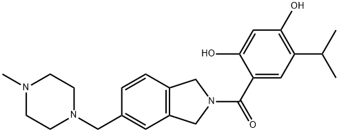 英文名稱:(2,4-dihydroxy-5-isopropylphenyl)(5-((4-Methylpiperazin-1-yl)Methyl)isoindolin-2-yl)Methanone CAS號:912999-49-6 分子式:C24H31N3O3 分子量:409.52