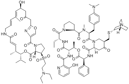 英文名稱:Quinupristin-dalfopristin CAS號(hào):126602-89-9 分子式:C53H67N9O10S.C34H50N4O9S 分子量:1713.09