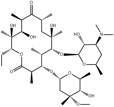 英文名稱:Erythromycin CAS號:114-07-8 分子式:C37H67NO13 分子量:733.93 EINECS號:204-040-1