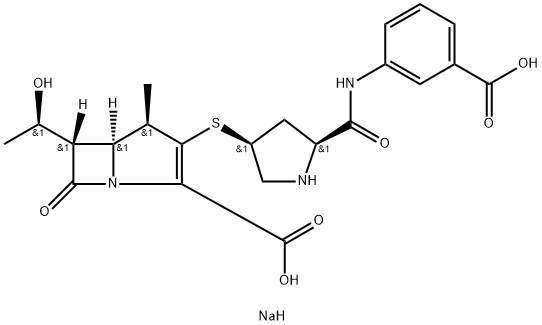 英文名稱:1-Azabicyclo(3.2.0)hept-2-ene-2-carboxylic acid, 3-(((3S,5S)-5-(((3-ca rboxyphenyl)amino)carbonyl)-3-pyrrolidinyl)thio)-6-((1R)-1-hydroxyethy l)-4-methyl-7-oxo-, monosodium salt, (4R,5S,6S)- CAS號(hào):153773-82-1 分子式:C22H26N3NaO7S 分子量:499.51 EINECS號(hào):1308068-626-2