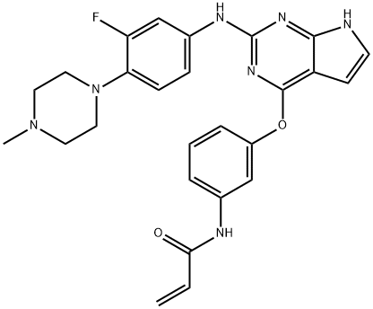 英文名稱:N-(3-{2-[3-Fluoro-4-(4-methyl-piperazin-1-yl)-phenylamino]-7H-pyrrolo[2,3-d]pyrimidin-4-yloxy}-phenyl)-acrylamide CAS號:1557267-42-1 分子式:C26H26FN7O2 分子量:487.53 EINECS號:1592732-453-0
