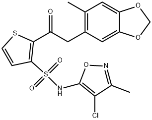 英文名稱:N- (4- chloro- 3- methyl- oxazol- 5- yl)- 2- [2- (6- methylbenzo[1,3]dioxol- 5- yl)acetyl]- thiophene- 3- sulfonamide CAS號:184036-34-8 分子式:C18H15ClN2O6S2 分子量:454.9