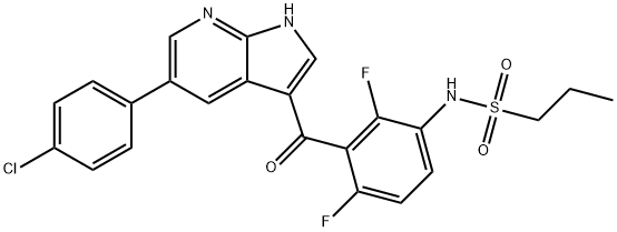 英文名稱:N-(3-(5-(4-Chlorophenyl)-1H-pyrrolo[2,3-B]pyridine-3-carbonyl)-2,4-difluorophenyl)propane-1-sulfonaMide CAS號:918504-65-1 分子式:C23H18ClF2N3O3S 分子量:489.92